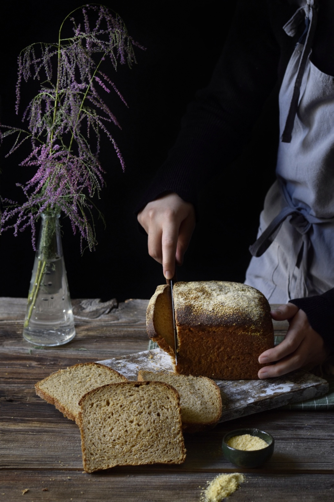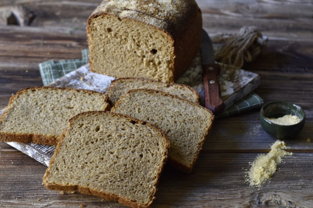 Ekmek yapımına başlamadan 4 saat önce 20 gram ana mayadan alınıp 40 gram un ve 40 gram su ile ön maya hazırlanır. 113 gram mısır unu 250 gram su ile ocakta 5 dakika kadar pişirilir, ocaktan indirilen bu karışıma 43 gram tereyağ ile 85 gr pekmez eklenip iyice karıştırılır, soğumaya bırakılır. Ön Maya hazır olunca yani 2 katına kadar yükselince diğer bütün malzemeler eklenerek yumuşak özlü bir hamur haline gelene kadar yoğurulur. (Süt miktarını az dan başlayarak yavaş yavaş ilave edin sizin kullandığınız unlara göre süt miktarınız değişebilir bu yüzden temkinli davranın!) Yoğurulan hamuru yağlı kaba alıp birer saat ara ile iki defa katlayın daha sonra 20 santim uzunluğundaki baton ekmek kalıbına rulo yaparak alın, kalıbın üst seviyesine gelene kadar dışarıda ya da dolapta mayalanması için bekletin. Baton kalıpta hamur yeteri kadar mayalandığı zaman fırınınızı 200 dereceye ısıtın. Ekmeğinizi önceden ısıtılmış alt üst ayardaki fırında 200 derece ile 190 derecede kademeli 50 dakika kadar pişirin. Deneyenlere afiyet olsun.